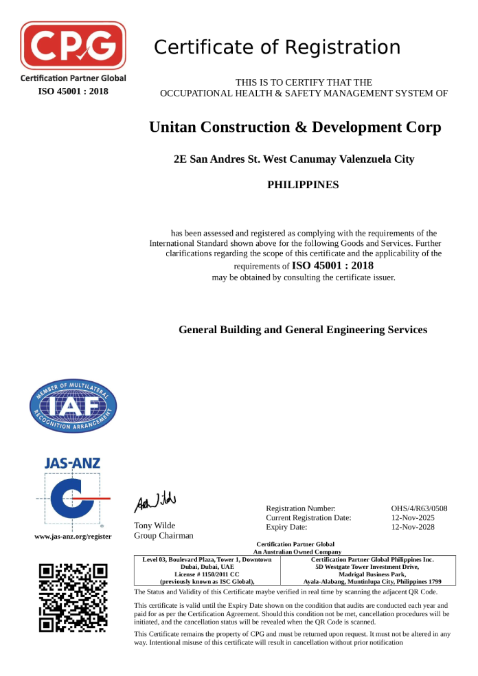 Unitan Construction & Development Corporation (UCDC) was established and founded by the late Neri Yeo Tan. Unitan Construction & Development Corporation is a PCAB Licensed “AAA” General Building Contractor with more than 30 years of experience in the construction industry.